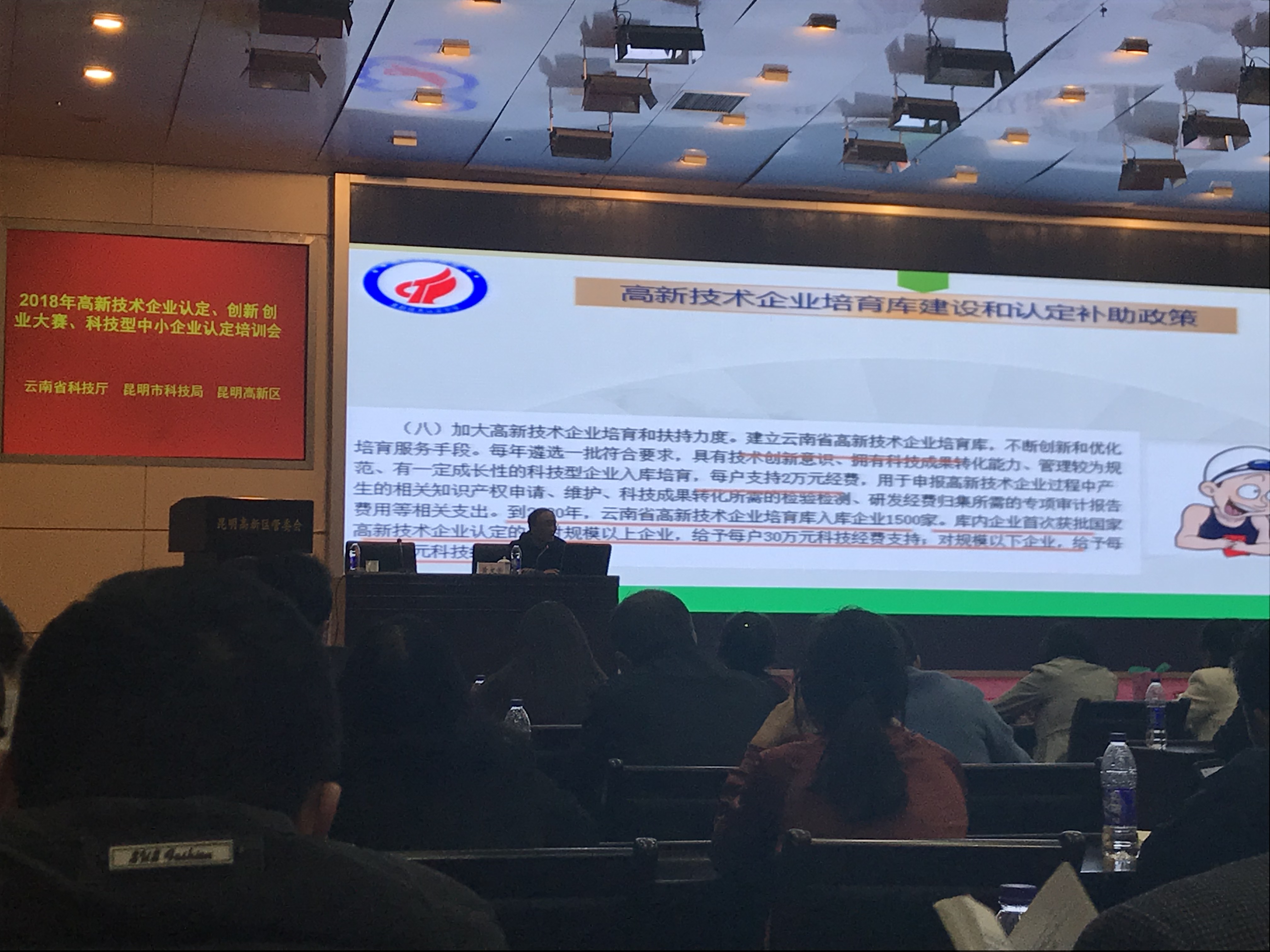 此次培訓(xùn)會目的為:進(jìn)一步加大《高新技術(shù)企業(yè)認(rèn)定管理辦法》和《高新技術(shù)企業(yè)認(rèn)定管理工作指引》的政治宣傳,指導(dǎo)企業(yè)做好云南省2018年高新技術(shù)企業(yè)培育認(rèn)定、第四屆云南省創(chuàng)新創(chuàng)業(yè)大賽及科技型中小企業(yè)培育認(rèn)定工作,幫助企業(yè)更好地準(zhǔn)備申請材料。通過此次培訓(xùn),為我公司日后順利開展高新技術(shù)企業(yè)再認(rèn)定工作打下堅(jiān)實(shí)基礎(chǔ)。