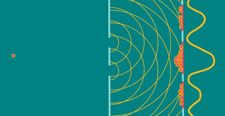 我們知道物質(zhì)是由基本的微觀粒子組成的,而波粒二象性指的是微觀粒子同時(shí)擁有“粒子”和“波”兩種術(shù)語來描述的狀態(tài)。簡單描述下,假設(shè)我們在前方豎立一塊木板,木板中央有一道縱向的縫,木板的后側(cè)則是一堵墻。當(dāng)我們向木板發(fā)射電子或光子等基本的微觀粒子,一部分粒子會被木板擋住,而一部分粒子則穿過縫隙落在了木板后側(cè)的墻面上。墻面上就形成了粒子留下的一道縱向條紋。