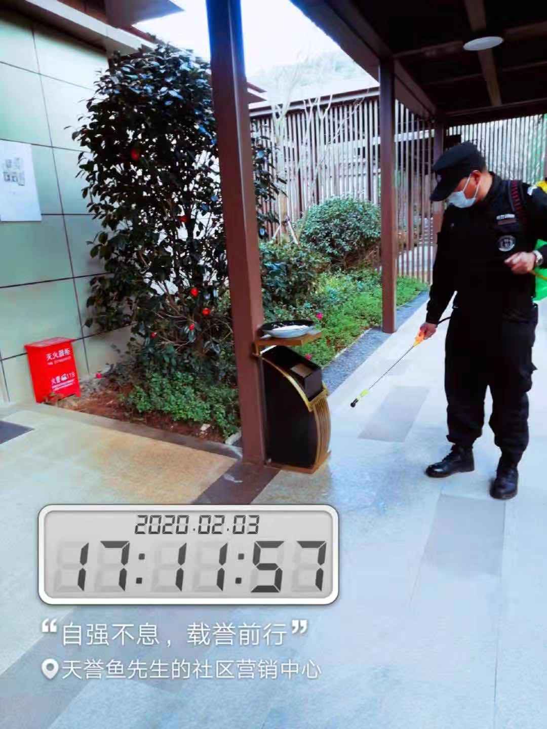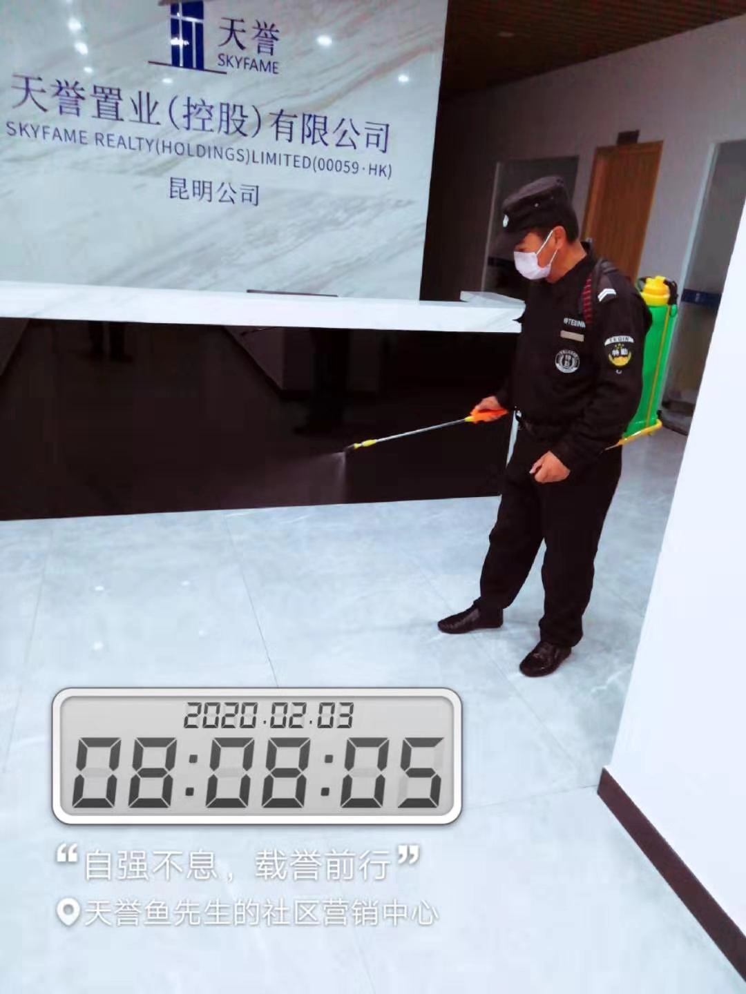 2月3日,安化地產(chǎn)公司物業(yè)管理對售樓中心、樣板房區(qū)和辦公區(qū)進(jìn)行消毒處理,提前作疫情防控處理準(zhǔn)備。