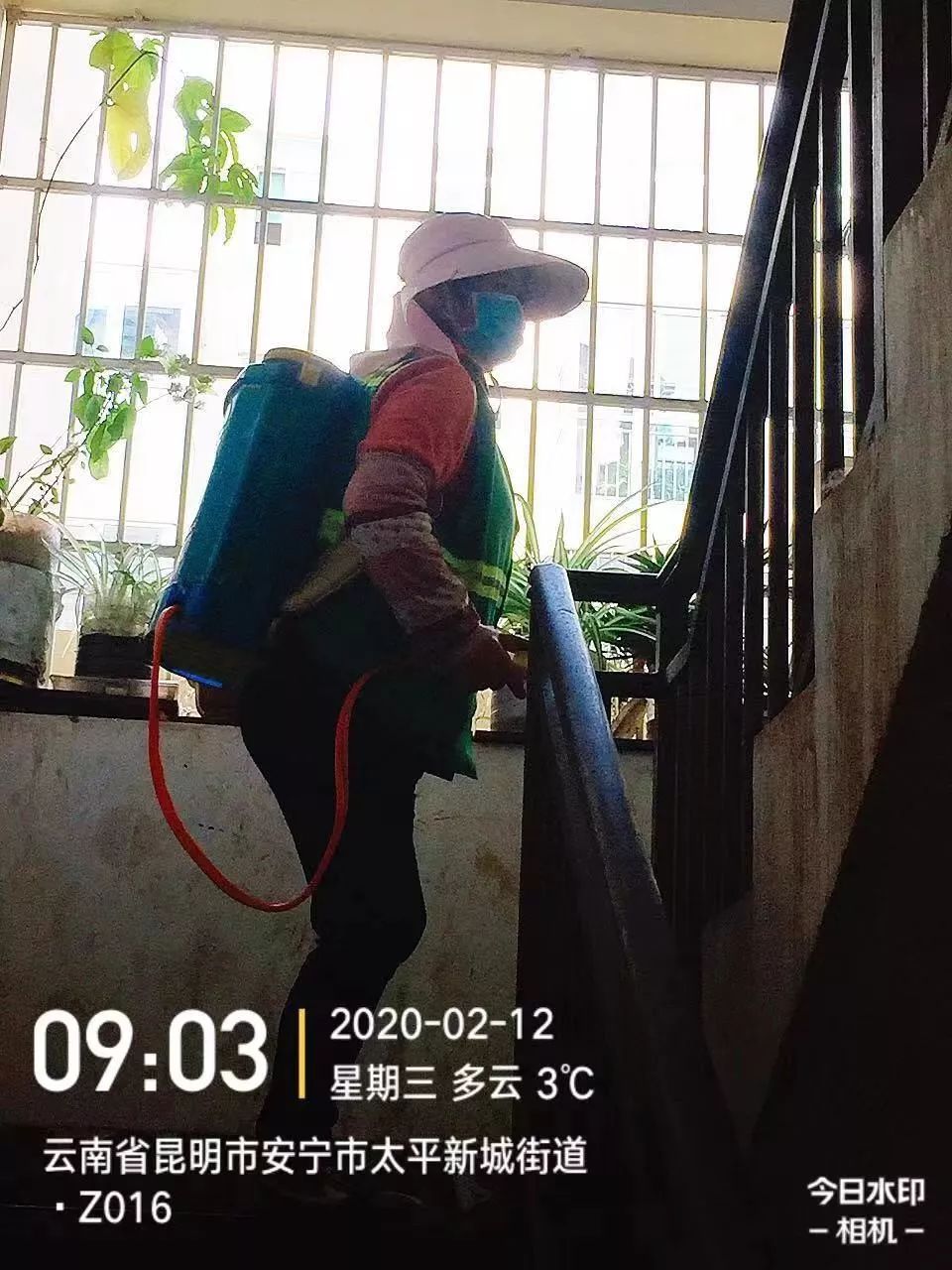 物業(yè)管理公司對生活區(qū)單元樓及單元門進(jìn)行消毒