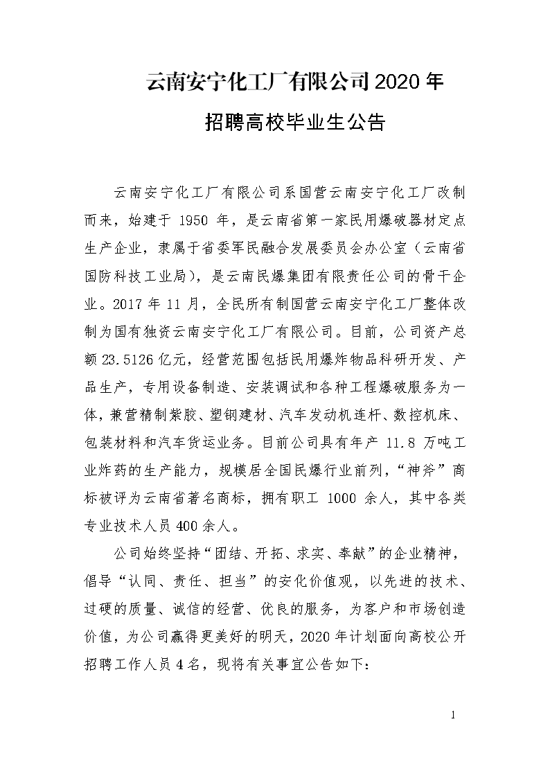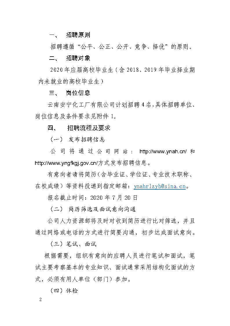 附件1:云南安寧化工廠有限公司2020年招聘崗位信息表