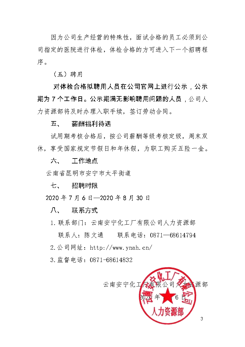 云南安寧化工廠有限公司2020年招聘高校畢業生公告