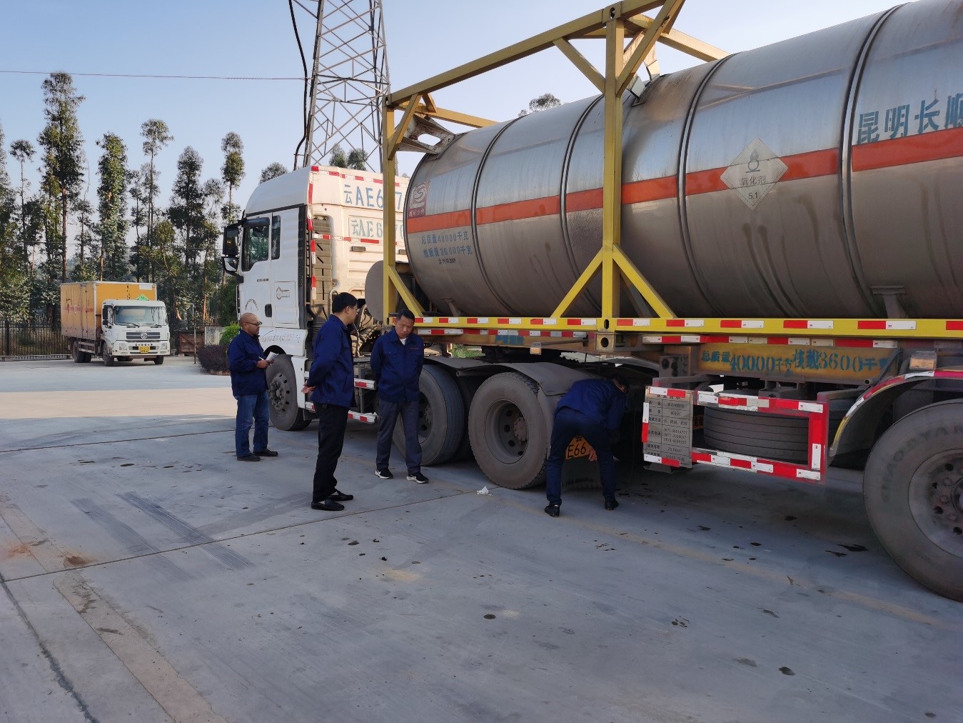 依照《云南省安全生產委員會辦公室關于印發云南省硝酸銨等危險化學品安全風險隱患第三輪裝箱治理工作方案的通知》精神,2020年11月16日,中達物流公司對未出車的液態硝酸銨運輸車輛開展專項檢查。內容涉及導靜電拖地帶、監控設備、輪胎一致性、主掛連接、整車潤滑、緊急切斷裝置、裝卸料管技術狀況、放空閥等內容。經檢查,查出一般隱患1項,要求駕駛員立即整改。