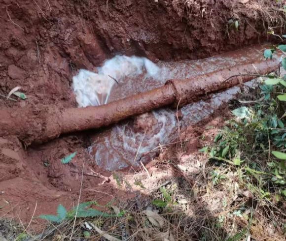 中午11點30分,終于在宏城棄土場(太平滇農園南400米處)找到有大量清水順管路流出,但要查清泄漏點和泄露原因,必須清除水管上方及周圍的土層。經與合作單位云南建美嘉建筑工程有限公司聯系,對方回復吃完午飯后立即派人帶工具到現場進行土石方施工;同時電話通知公司維修職工在家待命,等查清原因后帶工具及材料進行搶修。