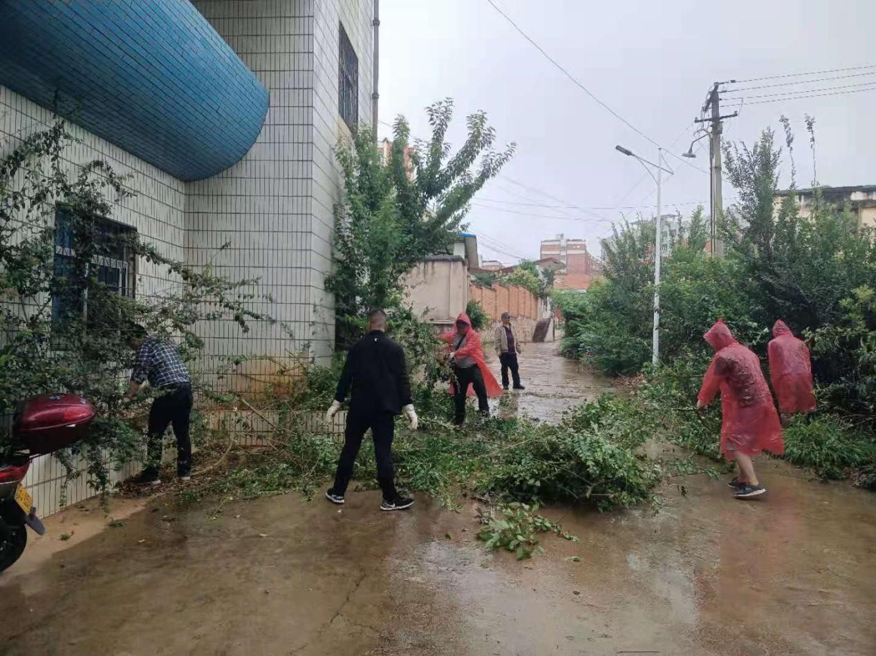 黨員們有的鋸除雜樹,有的在草叢中揮舞著鐮刀割草、有的將樓道內亂堆放的雜物清理干凈。雖然下著雨,但絲毫沒有降低大家勞動的熱情,經過大家一天的辛勤勞動,終于完成了清理工作,整個生活區面貌煥然一新。