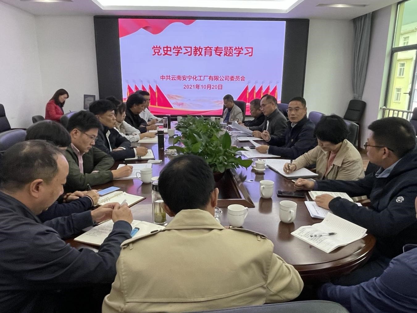 2021年10月20上午,公司黨委理論學習中心組開展黨史學習教育專題學習。公司黨委書記、董事長高劍同志主持學習,18名理論學習中心組成員參加專題學習。