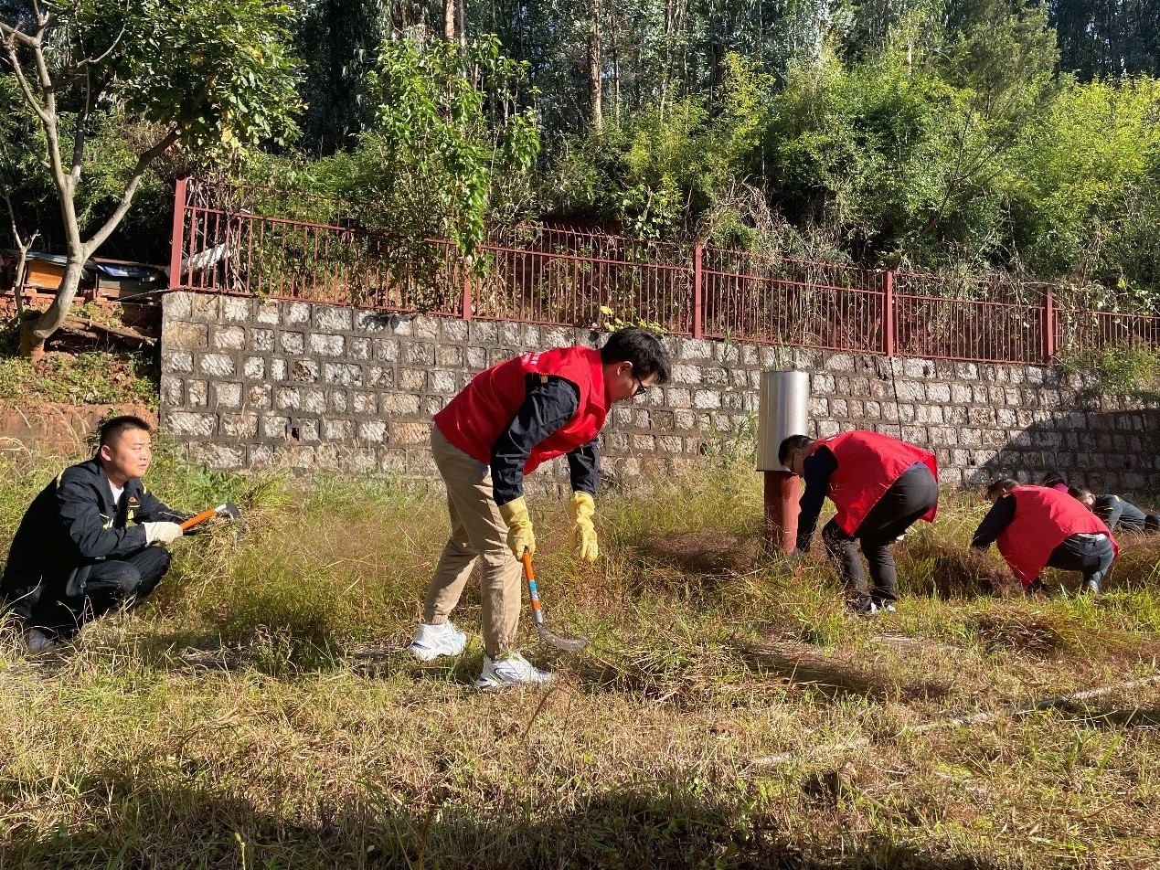 活動中,三十余名黨員同志分為兩個組。一組負責清理水泵房邊及附近住宅旁山坡上的藤蔓、雜草、垃圾。大家揮動著鐮刀、鐵鍬,在無法使用工具的區(qū)域徒手清理,最后將清理出來的藤蔓、雜草、垃圾分類打包進行處理。另一組負責清理生活區(qū)道路上的垃圾,打掃犄角旮旯的衛(wèi)生死角,清理群眾反映下雨易堵的下水道。