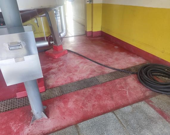 經過對人員合理分工后,在大家的齊心努力下,拆除了生產區域內因蒸汽發生器改造而閑置的蒸汽管道,對工房地面刷防腐漆進行翻新,對設備衛生死角進行清理等。通過地面打磨、清洗、上漆,生產區域防腐地面氧化發白情況變得煥然一新,設備設施清潔干凈,徹底整治了生產區的臟、亂、差。