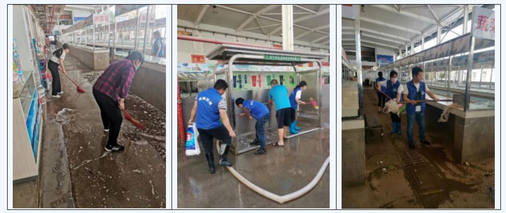 此次行動重點對市場地面、攤位臺面、垃圾桶、下水道等區域進行全方位、無死角清掃;清除各類散放垃圾、堆放雜物。行動中,大家發揚不怕臟、不怕累的精神,緊密結合、分工協作,分別手拿掃帚、沖水槍對市場地面、攤位臺面、墻面、垃圾桶進行了無死角的清除,對殘留的頑固污漬、“牛皮癬”等用清潔劑刷子進行擦拭清洗。市場內的經營攤主也和我們物業人員一起積極動手清理打掃。