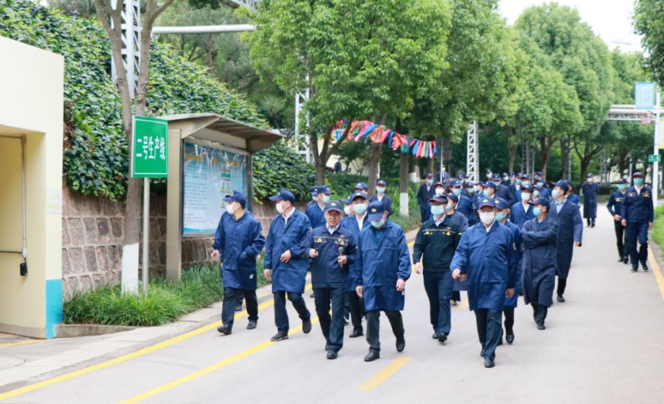 2022年6月7日上午,云南省人大常委會副主任羅紅江一行到云南安寧化工廠有限公司安寧分公司開展安全生產及安全監管相關工作情況調研。云南省委軍民融合辦副主任郭呈全,云南省戎合投資控股有限公司紀委書記周婇,云南民爆集團有限責任公司黨委副書記、總經理王榮,公司黨委書記、董事長高劍,黨委副書記、總經理彭長華及有關部門負責人陪同調研。