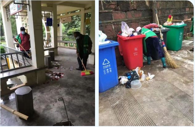疫情雖然限制了住戶們的腳步,但保潔人員的工作依然在有條不紊地開展著。臨時靜態管控期間,僅有的5名保潔人員每天都對安化生活區環境衛生打掃、公共區域消殺,竭力為安化生活區的住戶們提供一個良好的生活環境。