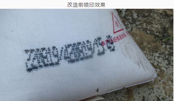 玉溪分公司粘性炸藥成品包裝袋的生產批號自投產以來一直使用大字符噴碼機進行噴印,因大字符噴碼機使用的墨水是水性墨水,噴印后的墨水會沿著包裝袋條紋擴散,最終導致噴印批號、生產日期數字模糊。