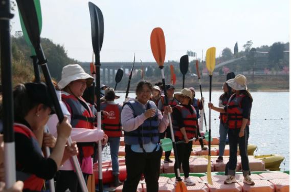 隨后,在教官的指導下,女職工們開展了破冰行動、飛盤團建、團隊密碼、乘風破浪等系列拓展活動。其中乘風破浪項目把女職工們參與活動的熱情推到了高潮,此項活動具備了常規團建的緊張刺激,又帶有水上活動特有的娛樂性,在水天一色間,全員釋放激情,拼搏向前。