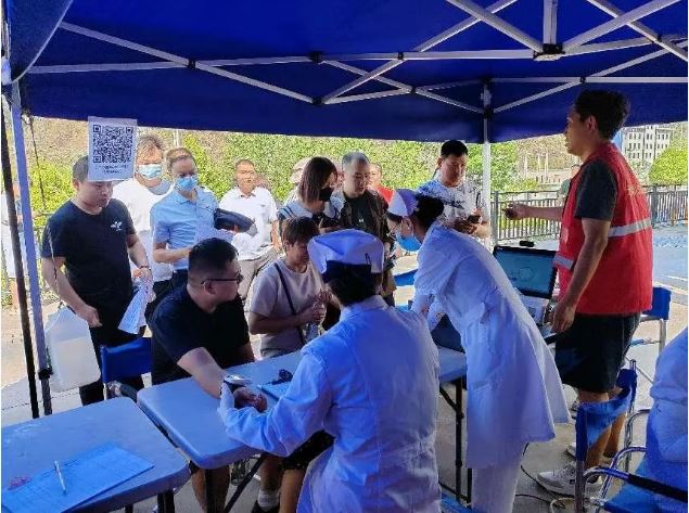 活動現場,前來獻血的志愿者們自覺排隊,在社區工作人員的積極引導下,按序進行掃碼登記、填表、量血壓、測血型等,順利通過之后進行采血。工作人員向成功獻血人員告知了獻血后的一些注意事項,并發放營養品和宣傳冊,鼓勵更多人參與到無償獻血的公益事業中來。