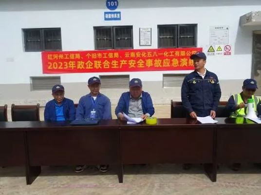 近日,云南安化五八一公司與紅河州工信局、個(gè)舊市工信局共同開(kāi)展政企聯(lián)合生產(chǎn)安全事故應(yīng)急演練,紅河州工信局處級(jí)調(diào)研員漆建平、個(gè)舊市工信局等相關(guān)領(lǐng)導(dǎo)到場(chǎng)指導(dǎo)。