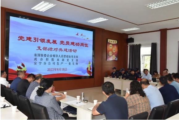 8月18日,省國資委企業(yè)領(lǐng)導(dǎo)人員管理處黨支部聯(lián)合戎合控股本部黨支部到安化公司與安寧分公司生產(chǎn)一黨支部開展“支部結(jié)對共建”活動。省國資委企業(yè)領(lǐng)導(dǎo)人員管理處黨支部、戎合控股本部黨支部、安化公司班子成員及安寧分公司生產(chǎn)一黨支部共計40余名黨員參加活動。