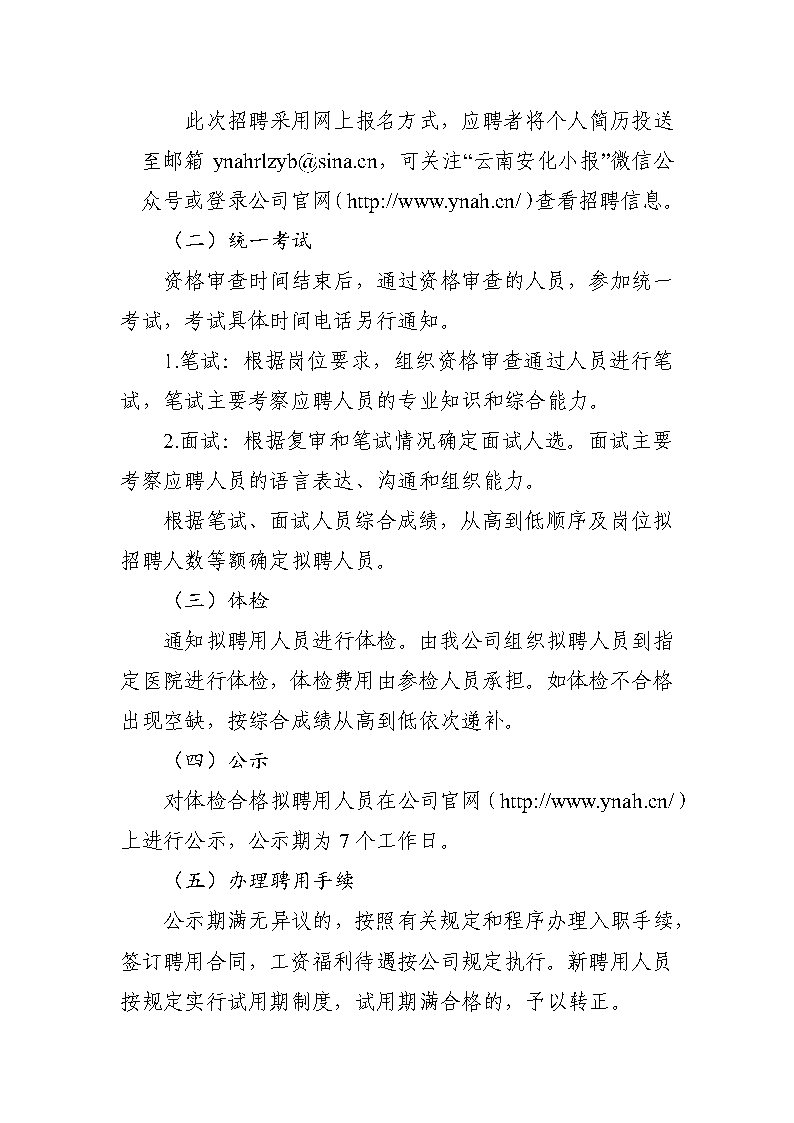 云南安寧化工廠有限公司招聘公告