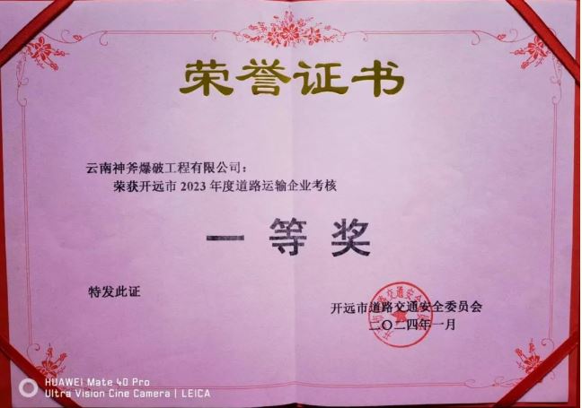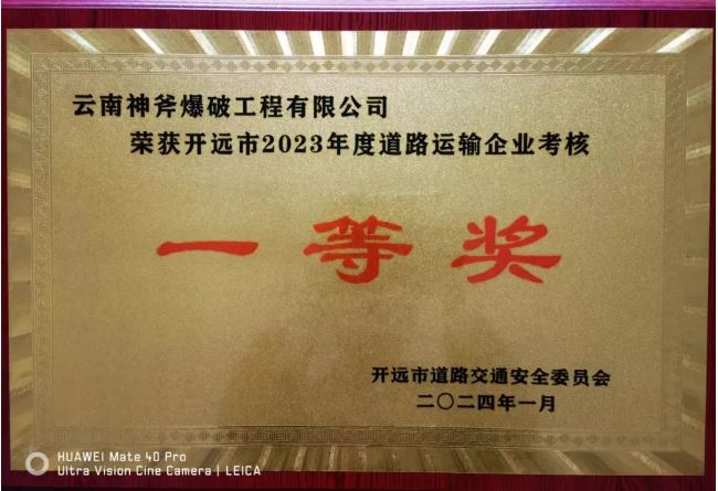【新聞】云南神斧爆破工程有限公司榮獲開遠市2023年度道路運輸企業考核一等獎