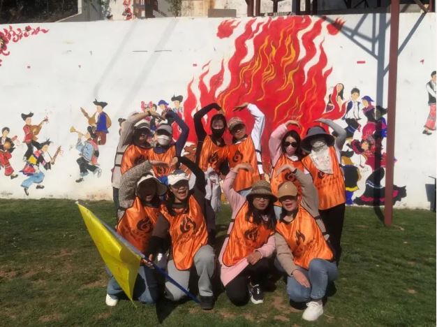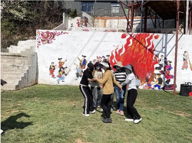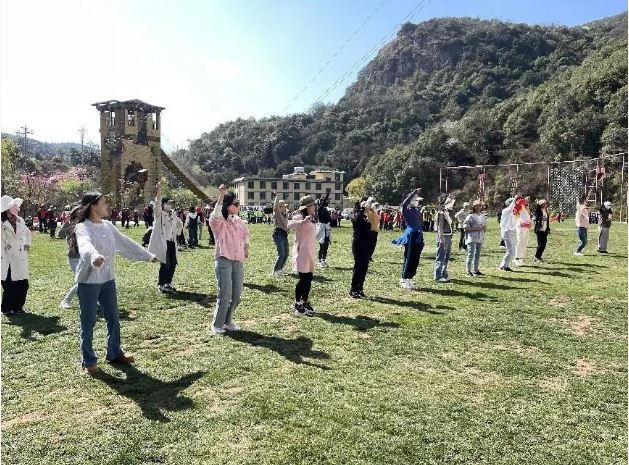 女職工們來到美麗的豹子箐,在教官的帶領(lǐng)下首先進(jìn)行合影留念、破冰行動、熱身舞蹈。